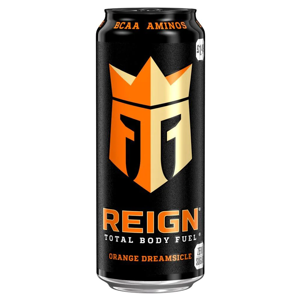 Reign Orange Dreamsicle. Si tratta di una bevanda energetica ad alto rendimento con una combinazione deliziosa di arancia, agrumi e vaniglia. Reign รจ il carburante per l’allenamento, con 200 mg di caffeina e BCAA, il tutto senza zuccheri. Inoltre, la Reign Orange Dreamsicle contiene vitamine del gruppo B per ridurre l’affaticamento e non ha coloranti artificiali. Insomma, una bevanda gassata chiara da consumare prima e durante l’allenamento, perfetta per gli sportivi!