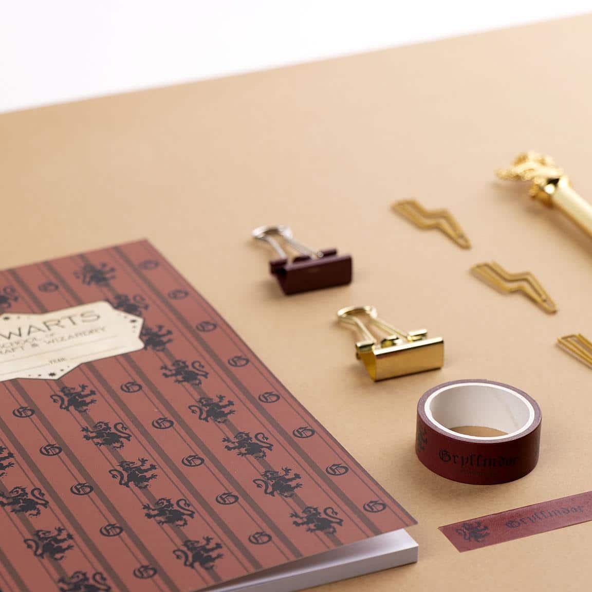 Set Cancelleria Hogwarts Grifondoro. Tieni in ordine tutto il necessario che ti serve per scrivere, disegnare, annotare. All’interno del set troverai un Quaderno Kraft A5, una Penna Nera, un Nastro Adesivo, Clips a forma di Harry Potter e 2 Fermacarte. Il Set Cancelleria Hogwarts Grifondoro è un prodotto con licenza ufficiale Wizarding World. Cosa aspetti? Non perderti questo set davvero utile ed originale!